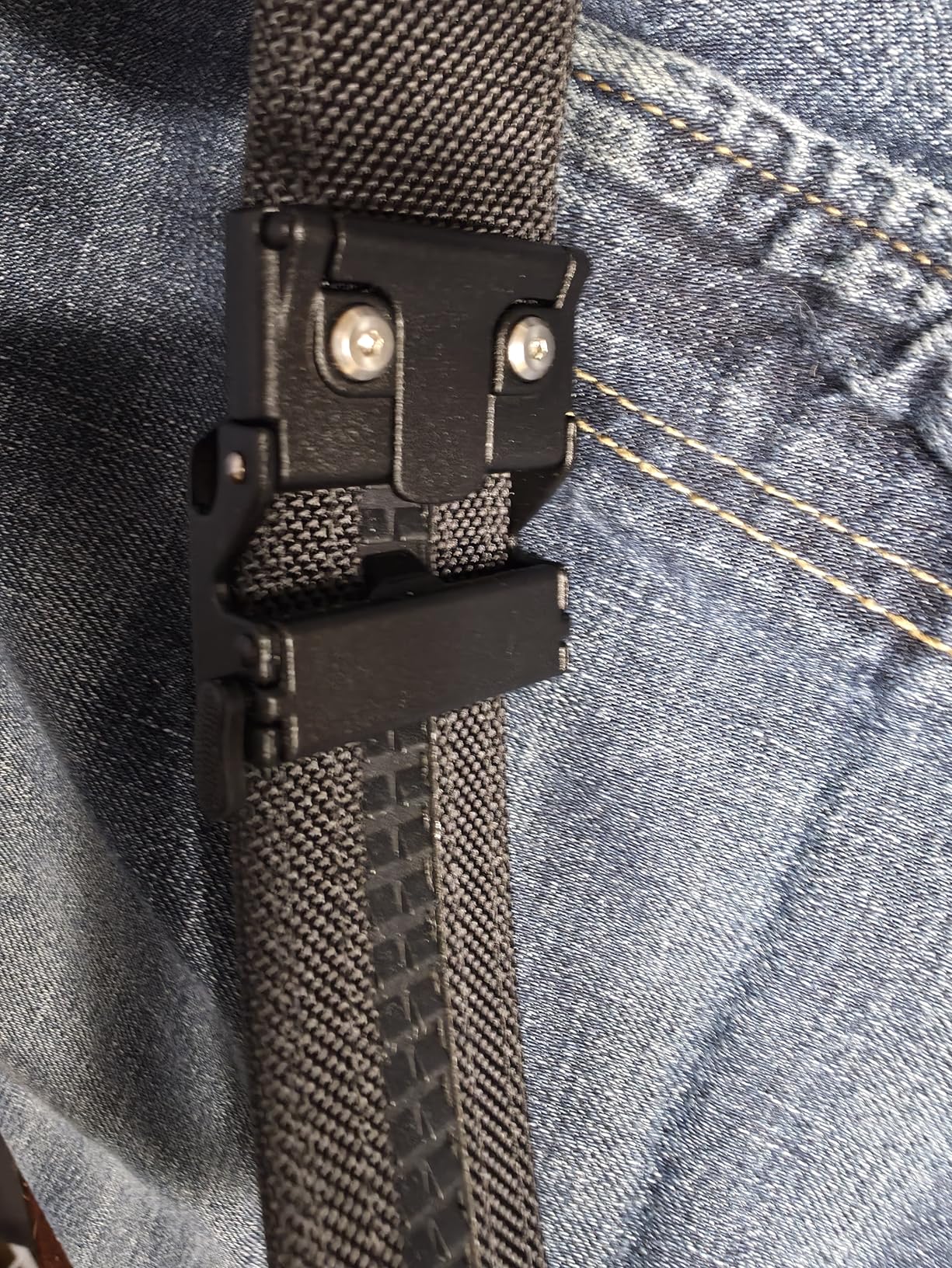 Good quality rugged belt and buckle. Needed a strong, breathable nylon belt with an easily adjustable metal buckle thats reliable and holds in place, and this is it. Cotton canvas belts that lack drying aren't good for cold situations, and nylon/plastic buckles may get you to a flight in ease, yet may not hold up to attaching gear/personal protection, especially in cold cracking temperatures.
